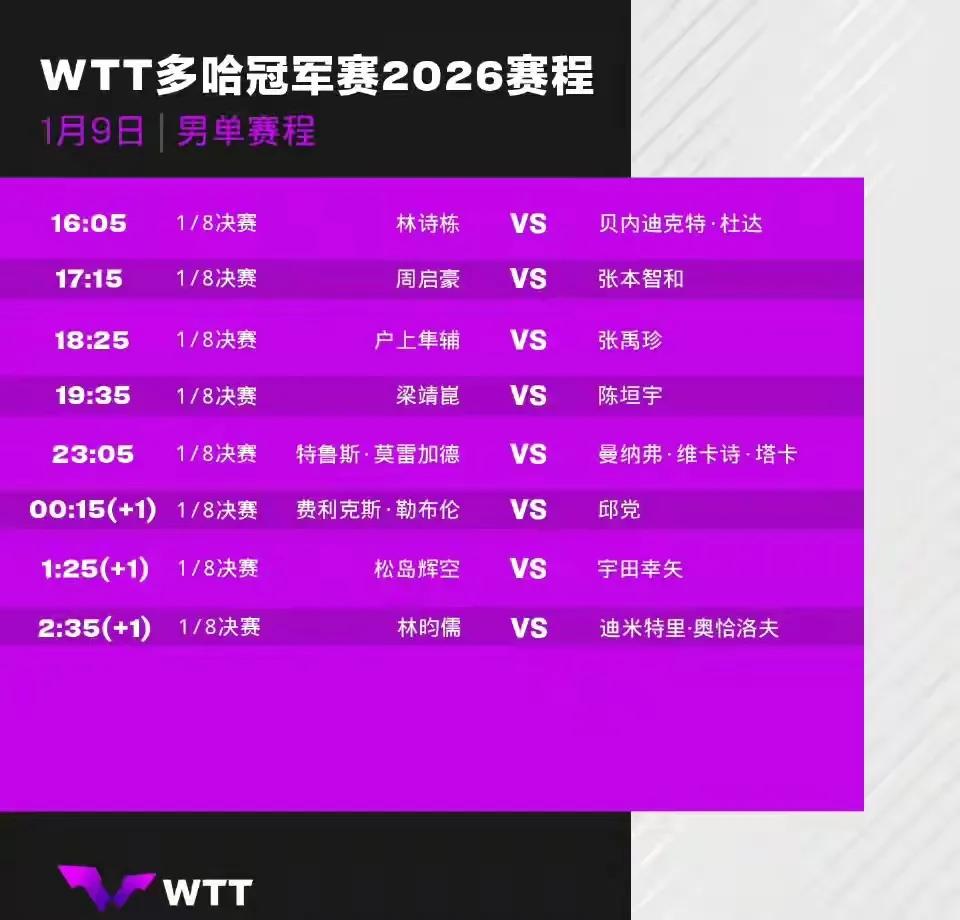 北京时间1月9日凌晨,多哈冠军赛结束了第二个比赛日,同时首轮比赛也全部结束,单打16强名单全部诞生,首轮接连传来冷门消息,而最大冷门非世界冠军雨果出局莫属,而国乒首轮9胜1负,发挥还是比较出色的,美中不足向鹏0-3完败张本智和,遭遇一轮游,而外协会莫雷加德、张本智和、小勒布伦等夺冠热门选手都顺利晋级,梁靖崑与小将陈垣宇提前相遇,林诗栋迎来挑战。