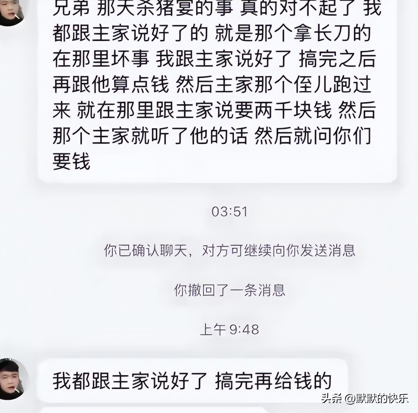 可没想到,猪都已经拉来杀了,前前后后的流程也全走完,猪也杀好了,眼看着马上就要开席热闹起来的时候,出场地的那家人却突然变卦,当场张口就要2000块场地费。