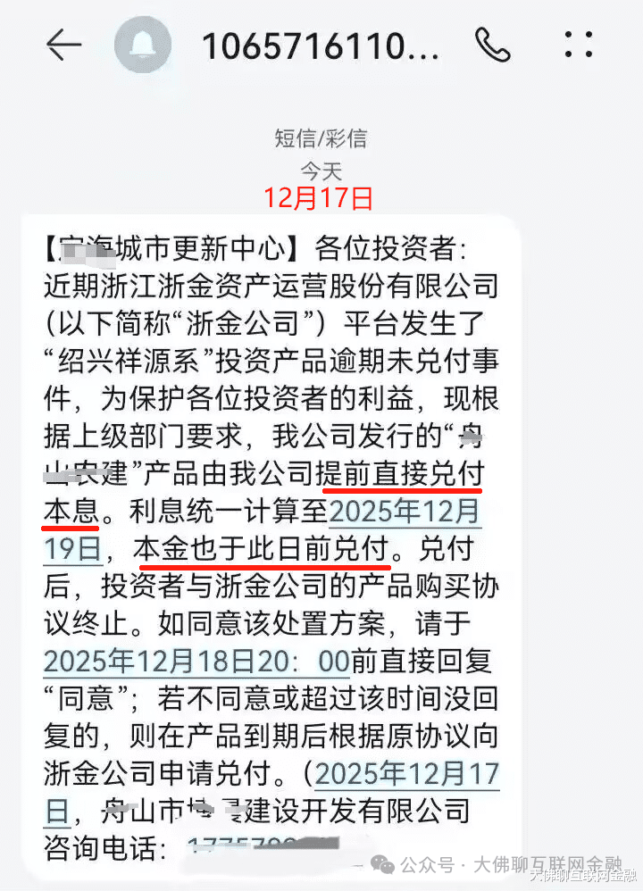 12月中下旬开始,因受延期地产债项目影响,通过某金中心发行的多只非标城投债,开始通知投资人提前兑付本息。相关产品投资人确认兑付方案后,目前也已收到全额本息。