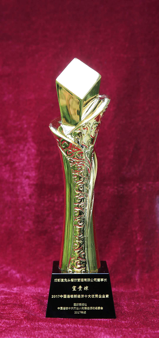 2001年,宣贵琼怀揣15万元启动资金,携清朝同治年间宫廷御用秘方入局成都餐饮市场,将彼时仅为地方风味的兔头小吃,赋予深厚文化内核与标准化升级。她秉持“非遗不是博物馆里的标本,而是活态传承的生命力”的发展理念,开创性地将传统工艺与现代管理标准相结合,建立专属养殖基地与全链条品控体系,让兔头产品在保留麻辣鲜香、酱香醇厚等传统风味的同时,实现安全与口感的双重保障。