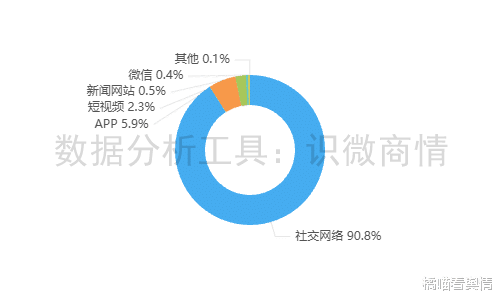 该时段内,有关“瑞幸咖啡错别字杯套事件”的舆情主要集中在社交网络平台,约占90.8%,其次为新闻APP(约占5.9%),短视频(约占2.3%)。
