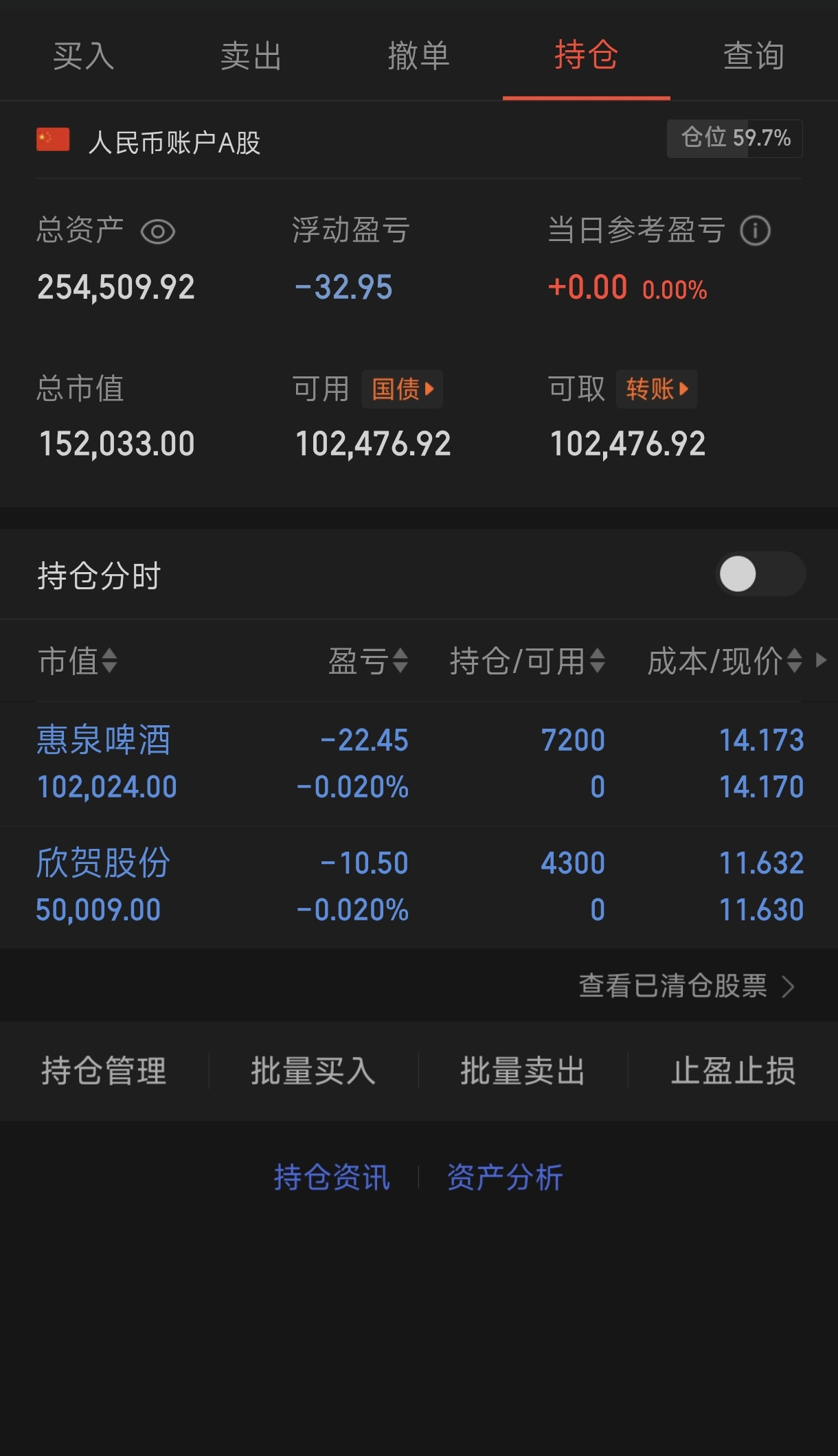 惠泉啤酒,板上买的。这个实际比欣贺股份更好些,看这个明天会不会给个板。如果上午先出现惠泉,我就不会去买欣贺股份了。