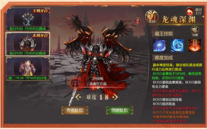 龙魂深渊是战盟专属的 PVE 组队团本玩法:战盟成员可在组队挑战多级别难度的副本,副本难度随层级提升会解锁更多 BOSS 机制,通关后不仅能获取奖励,还能解锁战盟独特装备,是战盟集体养成的核心玩法