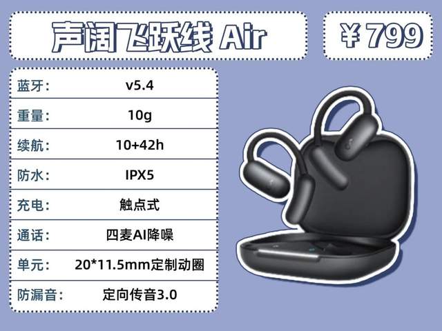 这款耳机用下来,最亮眼的地方就是佩戴体验,真的没话说,但综合来看性价比不算高,入手前得好好琢磨下。这款耳机的音质。听着很一般,人声不够细腻,低频也没什么力度,跟同价位的产品比起来,大概处于偏下的水平,没什么竞争力。而且这款耳机的价格不算便宜,结合它的音质表现来看,性价比确实不高。不过这耳机机身轻得离谱,加上黄金夹角的错位设计,能完美贴合耳型曲线。戴大半天下来,既不硌耳也不闷痛,轻盈又舒服,就算跑跳也不容易滑,完全没什么负担,所以总结下来,要是你对佩戴舒适度有刚需,特别在意长时间戴的体验,那它值得一看。