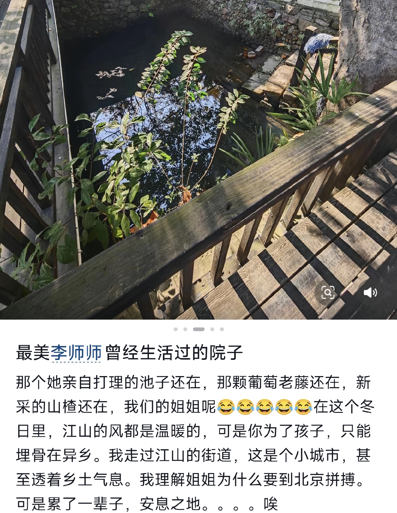 其中有两位博主在何晴浙江老宅打卡评论不断第一位博主昨天来到何晴浙江老宅,站在何晴老宅院子里的池塘边感叹最美李师师住过的院子,这个何晴亲自设计的小池塘,再也等不到它的主人!