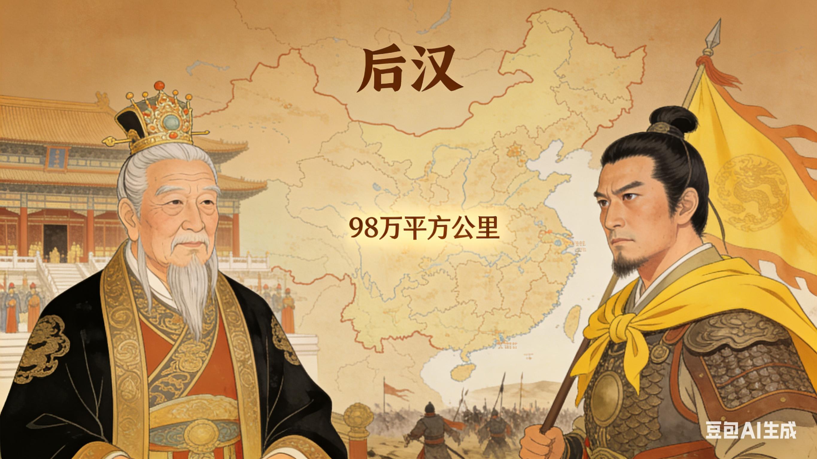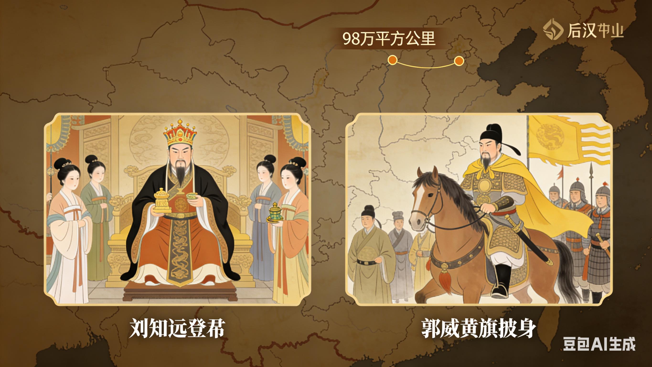 1. 封面图:后汉疆域图(标注98万平方公里范围)+ 刘知远登基插画+郭威黄旗披身场景合成图;