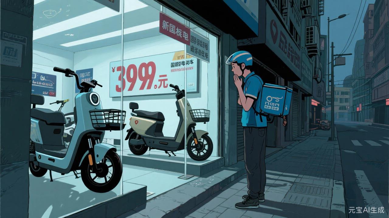 一位在北京跑了三年外卖的骑手站在车行前,指着标价2980元的旧国标车问销售:"这车还能上牌多久?"他盘算着,如果新车要4000元,相当于他送近500份外卖的利润。