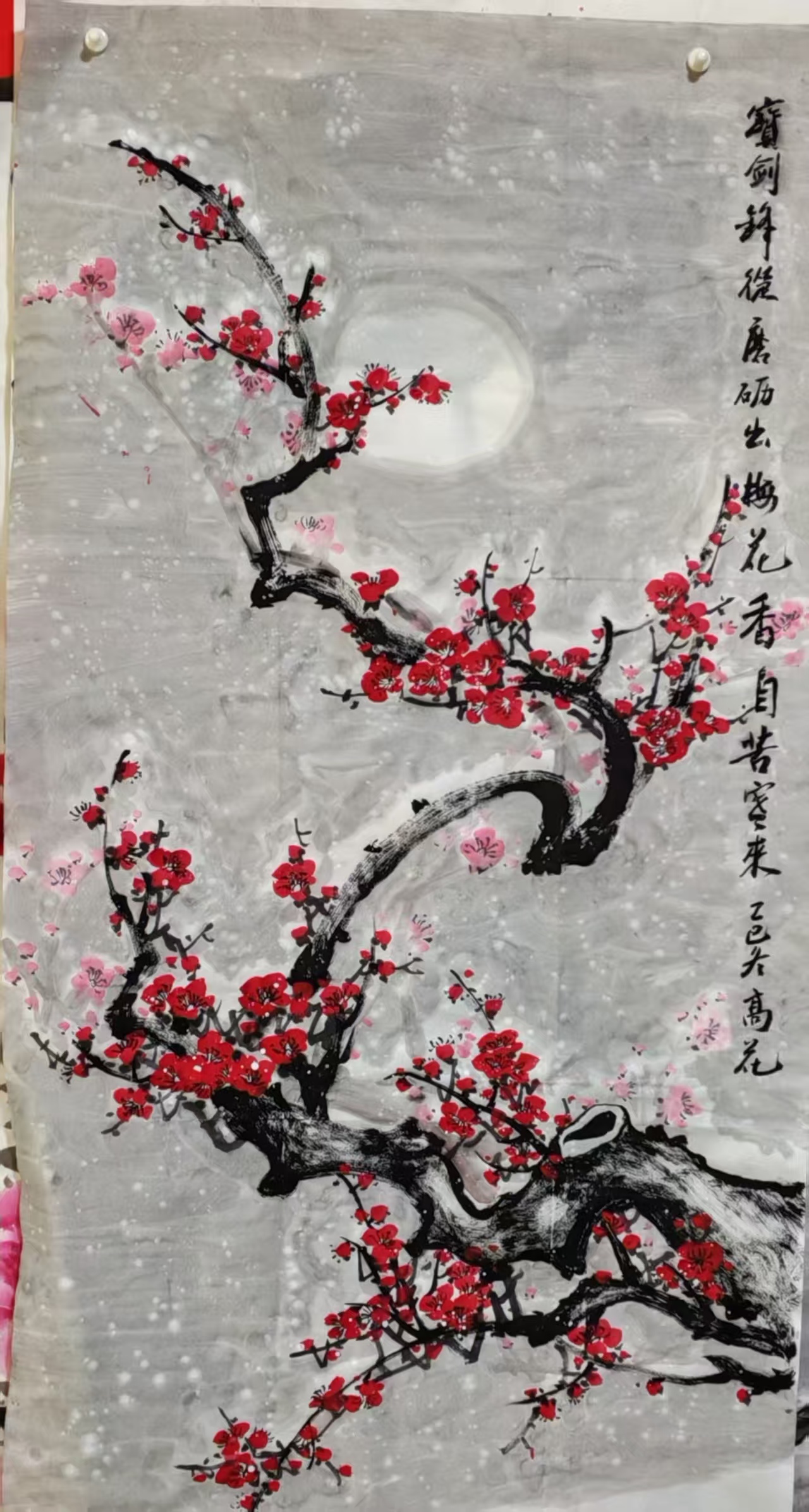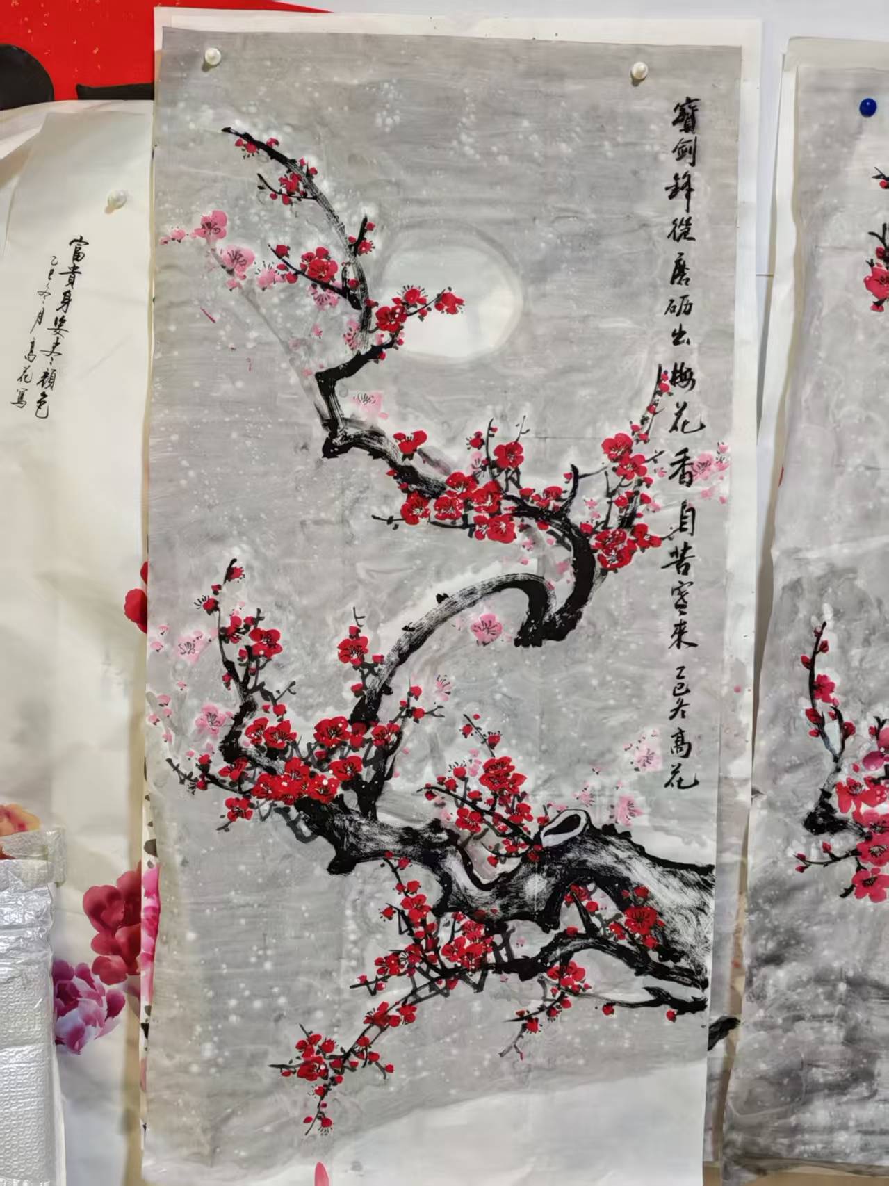 高花的艺术之路始于家族剪纸技艺的熏陶,却未囿于一门。她先后拜师学习麦草画、烙画、面塑,将多种非遗技艺融会贯通。这种跨界融合,不仅丰富了她的艺术语言,更让她的创作视野愈见开阔。其“梅兰竹菊”系列作品屡获国家级、省级金奖,多幅作品被博物馆、文化馆永久收藏。她以实践证明,非遗的传承并非静止的保存,而是在融合与创新中实现“活态传承”。