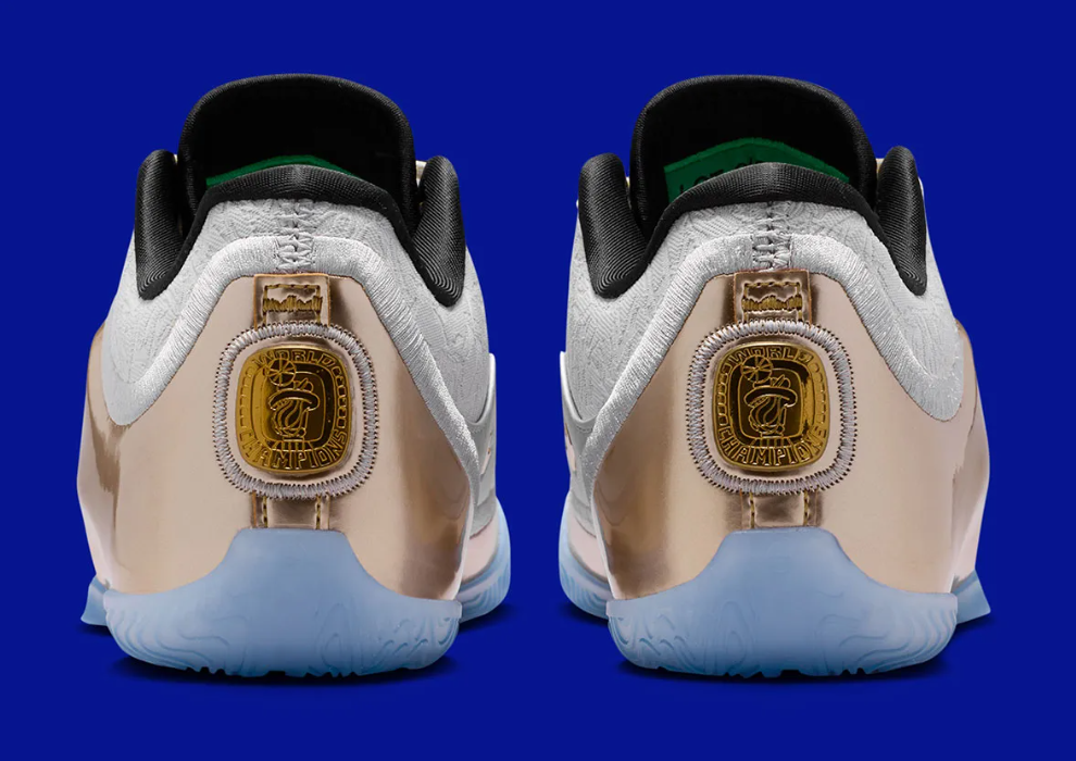 回归到鞋履设计上来讲,优秀的银白色与金色结合,也非常契合这款配色的总冠军主题,鞋履后部也有代表着冠军荣誉的戒指图案,进一步升华了鞋履的独特内核;最近Nike LeBron 23放出了不少这种充满纪念意义的配色,而这款对于首冠的怀念明显也具有更高的含金量。