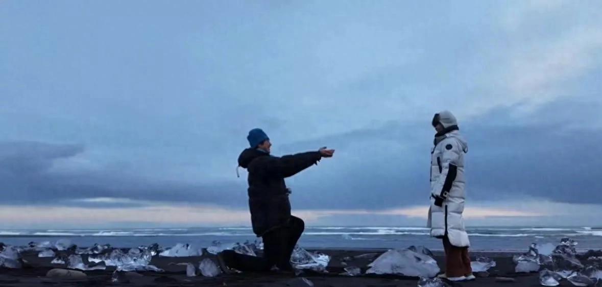 至于冰岛为什么成为求婚地?别问,问就是“钻石沙滩”自带BGM——黑沙滩配冰钻,浪漫值拉满,还谐音“情比金坚”,金莎本人都忍不住玩梗:“时间地点事件,要素齐全,可以上热搜了!”而孙丞潇的文案更绝,直接复制粘贴女友格式,被调侃“复制黏贴式爱情”。