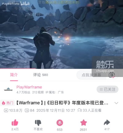在B站上,“旧日和平”版本的关注度很高,“星际战甲旧日和平”话题下涌现众多热门视频,浏览量突破1900万。抖音更是相继出现多个新版本相关话题,播放量超过6000万。