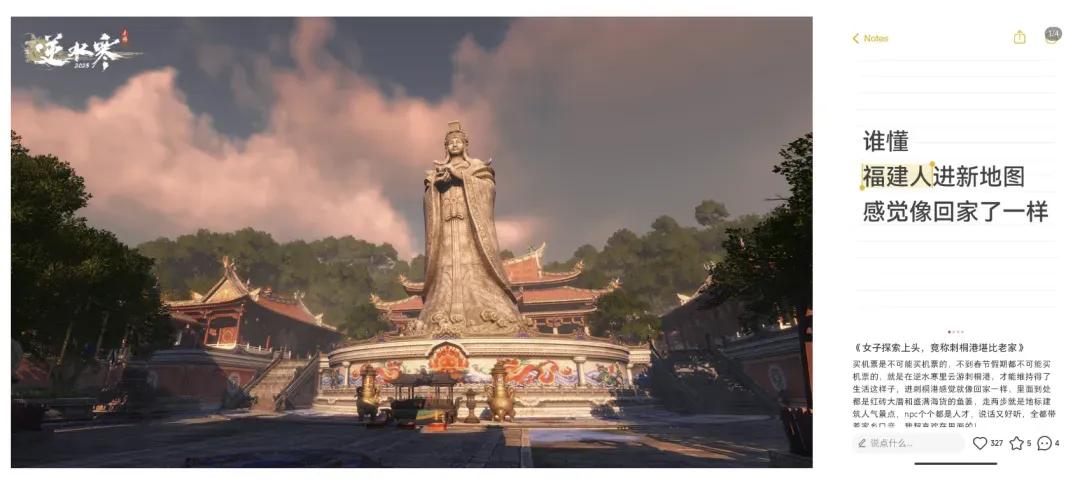 这些非遗民俗文化的还原,都得到了很多玩家的好评。这次周年庆版本更新后,还有福建玩家发帖说,「打开游戏就像回了老家一样」。