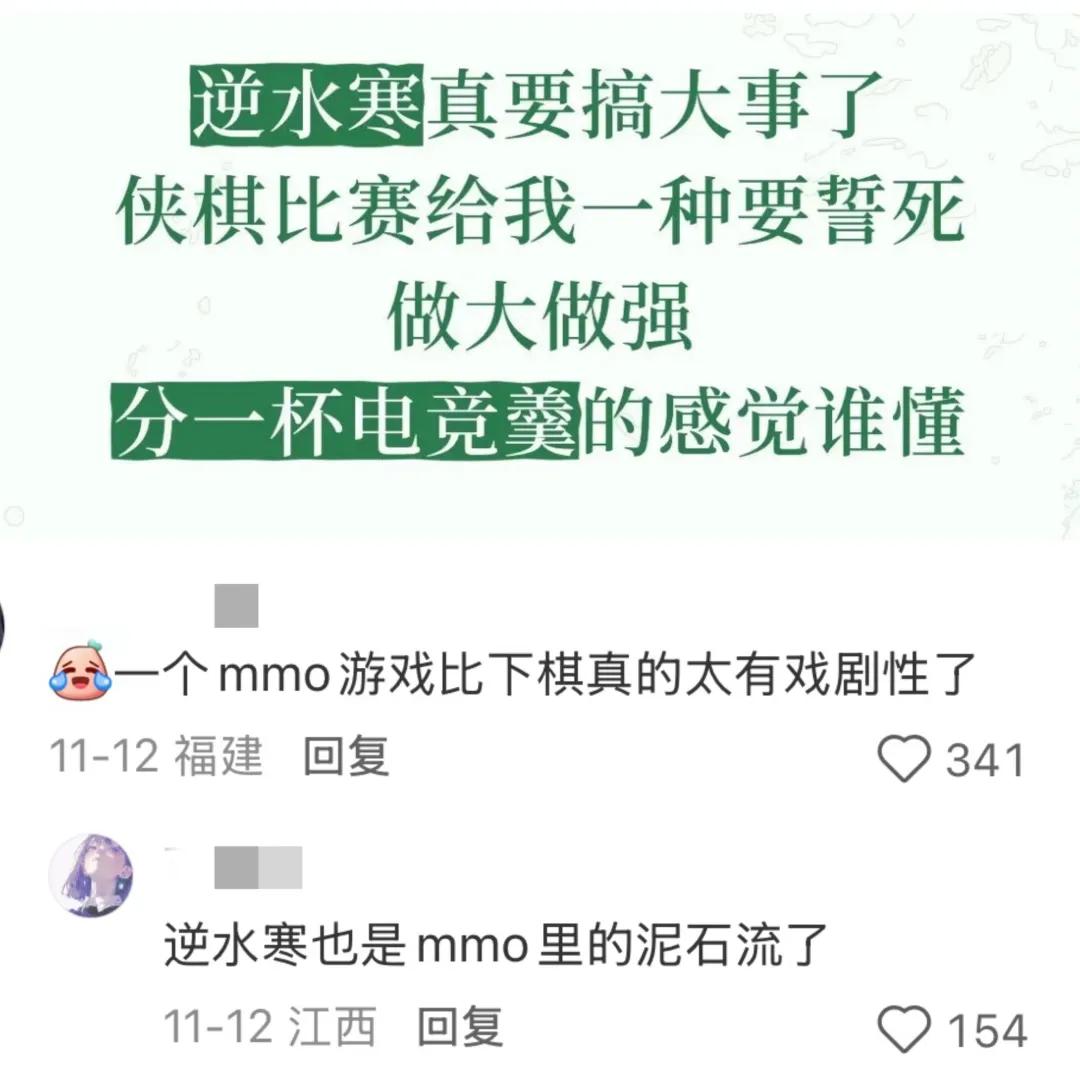 比赛阵仗搞这么大,连玩家都忍不住吐槽,一个MMO比赛居然是下棋,也太有戏剧性了。