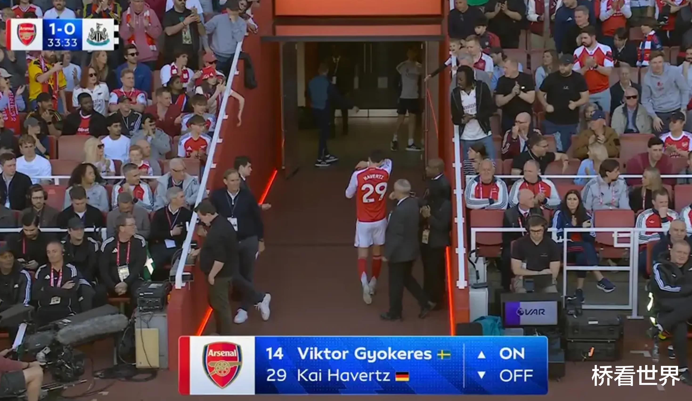 【哈弗茨对阵纽卡伤退离场】