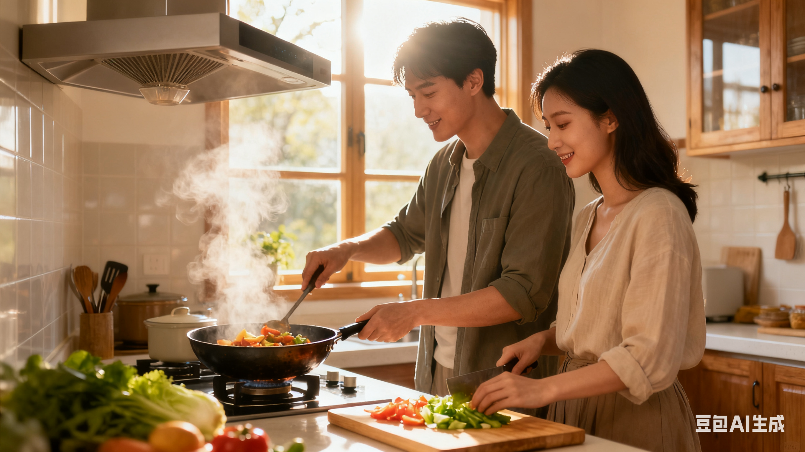 抽油烟机轻轻运转,嫂子把切好的青菜倒进热油里,“刺啦” 一声,香气瞬间弥漫开来;表哥在旁边打下手,递盐、擦灶台,偶尔和嫂子聊几句家常,“今天买的排骨很新鲜”“孩子想吃你做的红烧肉了”。