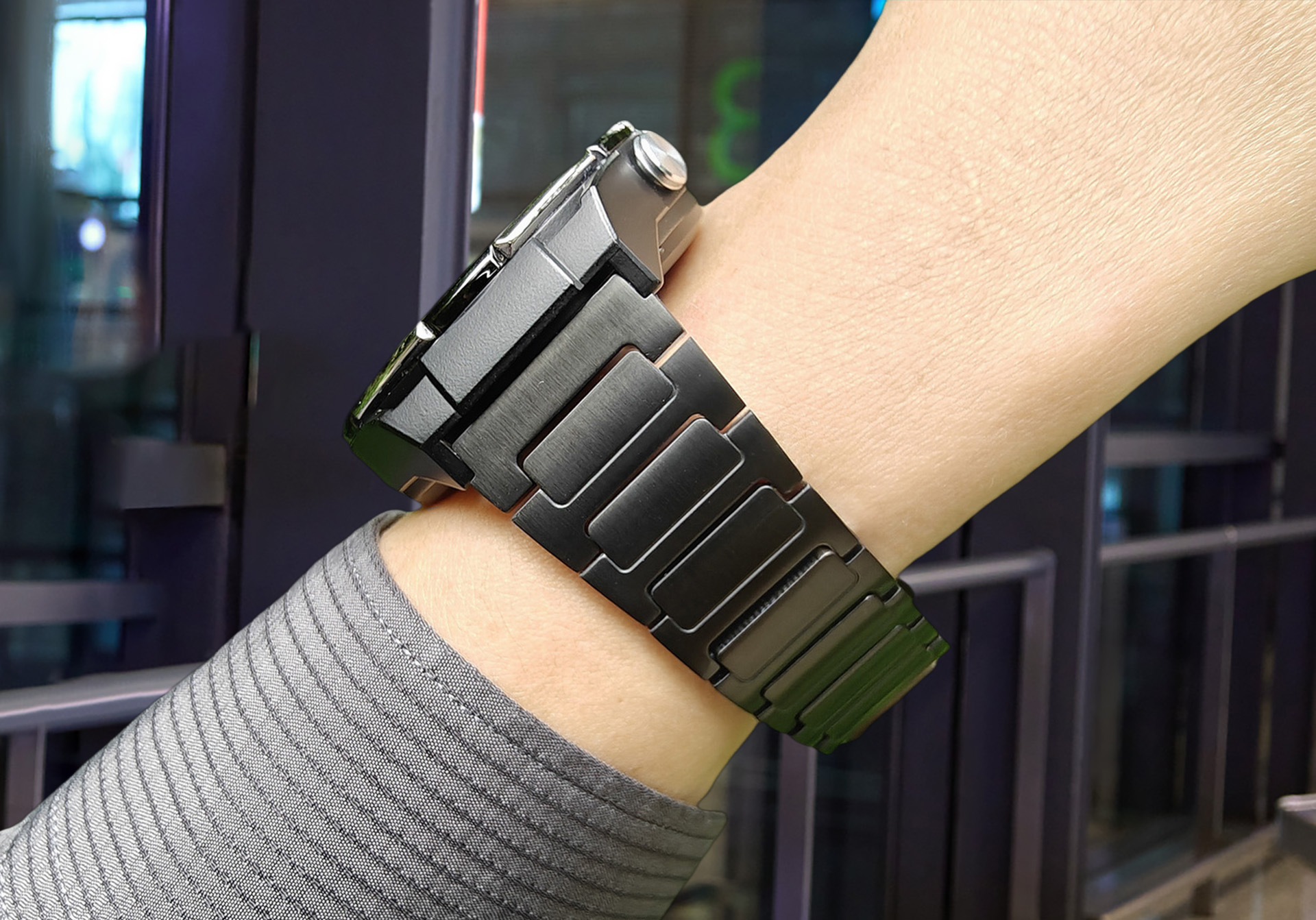 46mm钛金属表壳+蓝宝石玻璃,重量仅42g,佩戴一天无勒腕感。