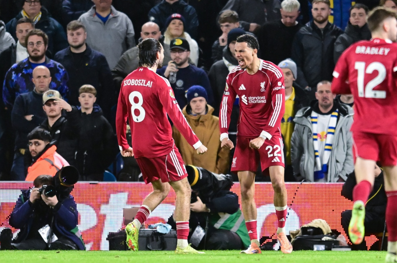 利物浦首发(4-2-3-1):1-阿利松;6-凯尔凯兹、4-范戴克、5-科纳特、12-布拉德利;17-柯蒂斯-琼斯、38-赫拉芬贝赫;7-维尔茨、10-麦卡利斯特、8-索博斯洛伊;22-埃基蒂克。