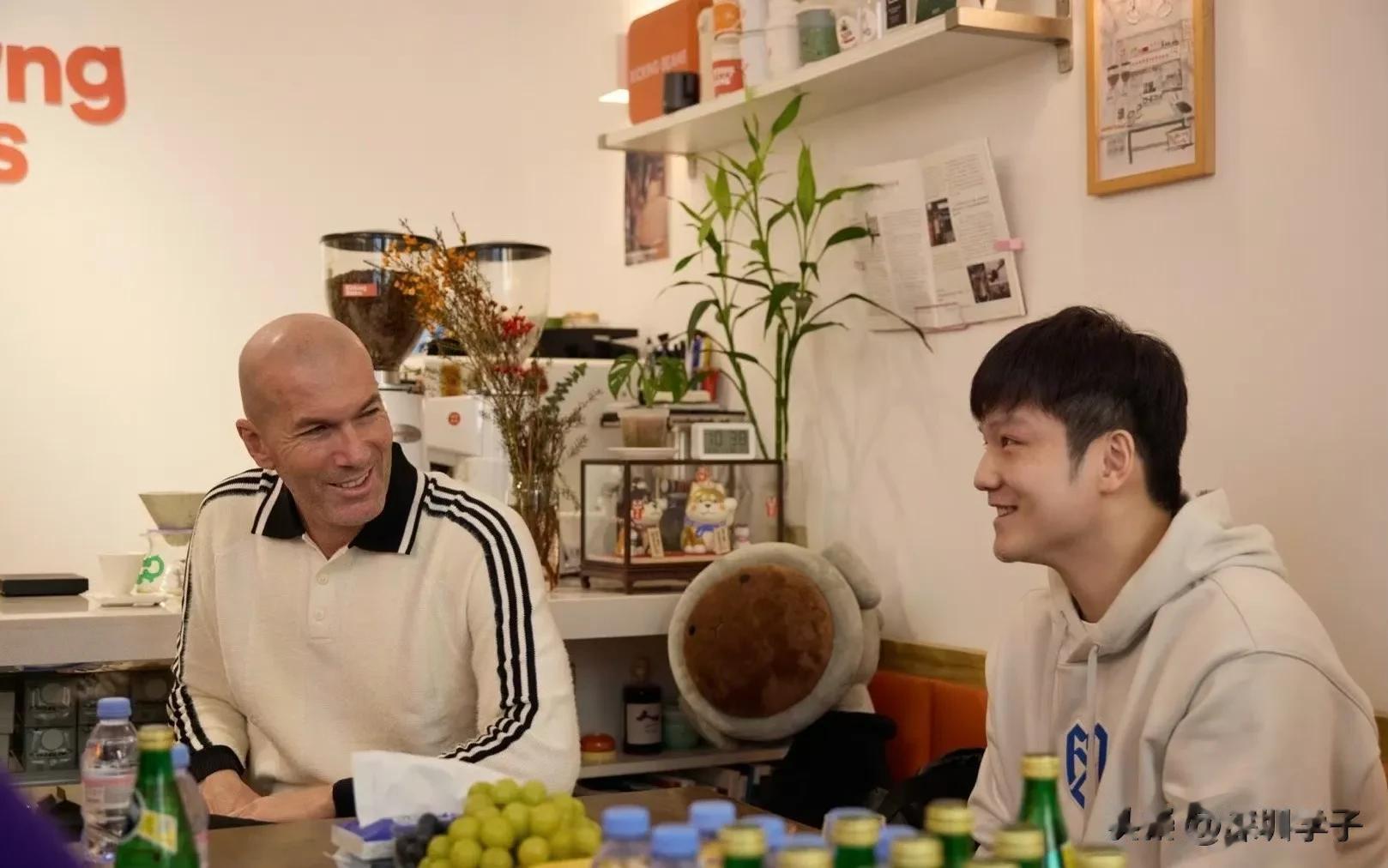 樊振东看到皇马的功勋前球员教练齐祖也是像看到了偶像,眼睛发光,优秀的人更欣赏优秀的人。
