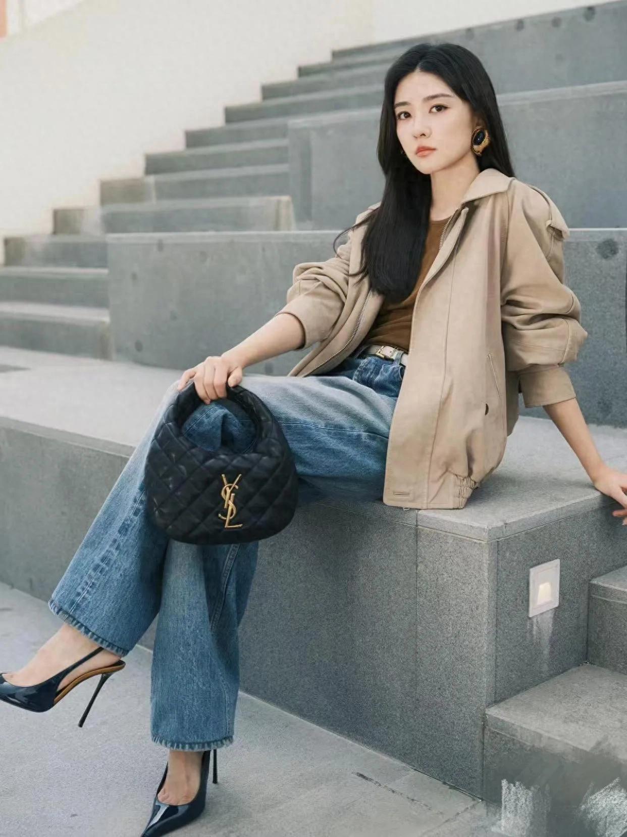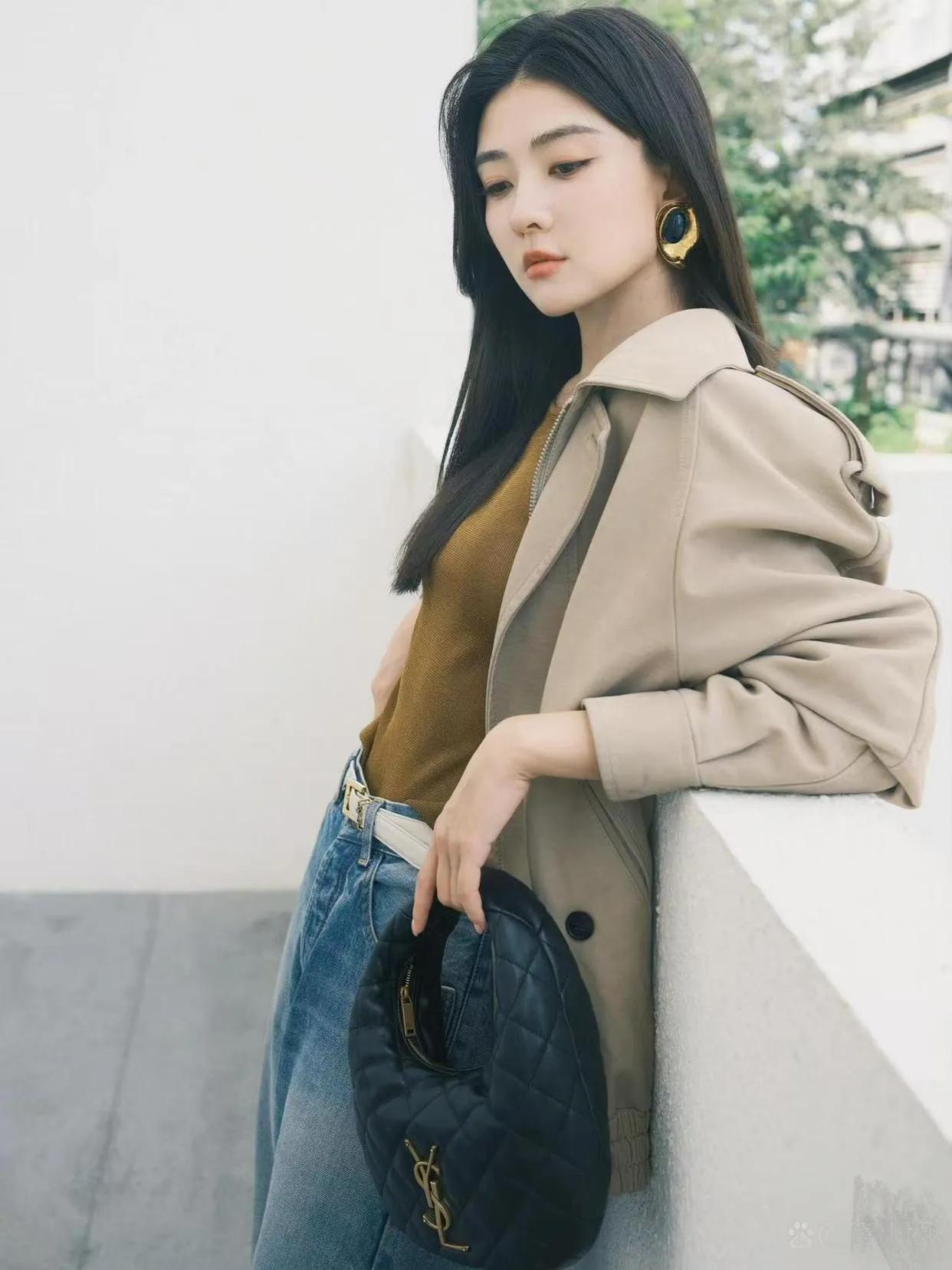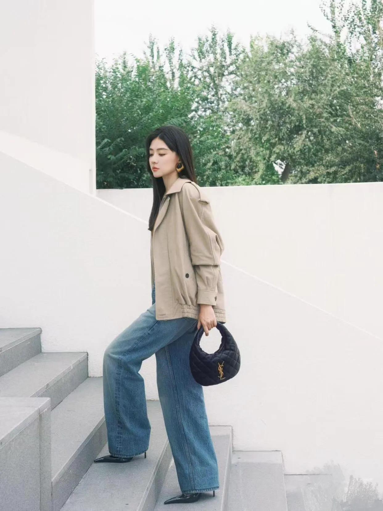 梁洁私服穿搭真时髦!夹克外套+针织衫+牛仔裤,时髦又高级!