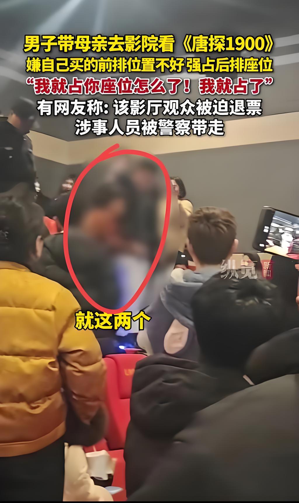 近日,安徽蚌埠某影院《唐探1900》观影现场发生占座纠纷。一对母子拒绝离场,还称“我就要坐这,你管我呢”,导致300多人被迫退票!最终涉事母子被警方带走。