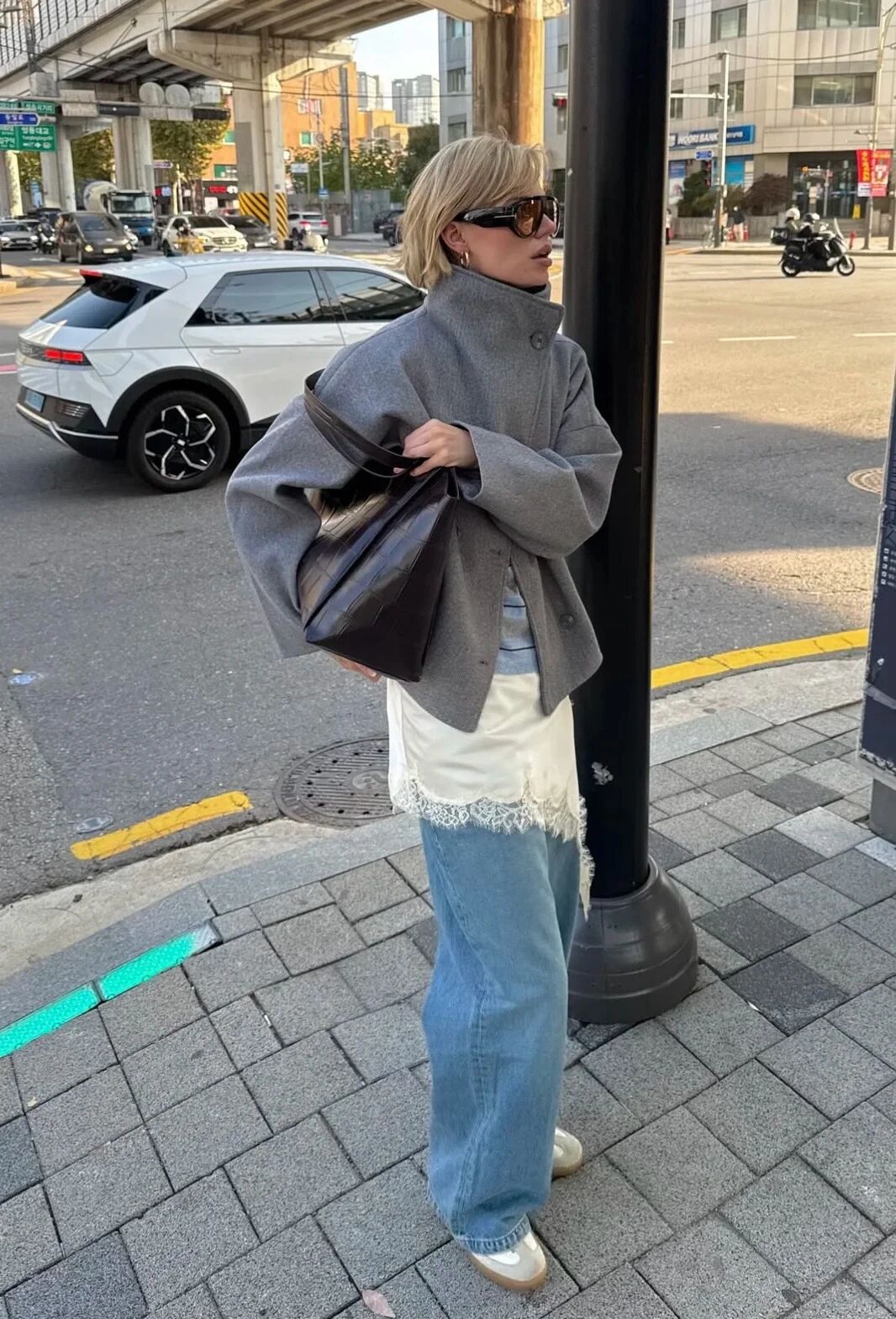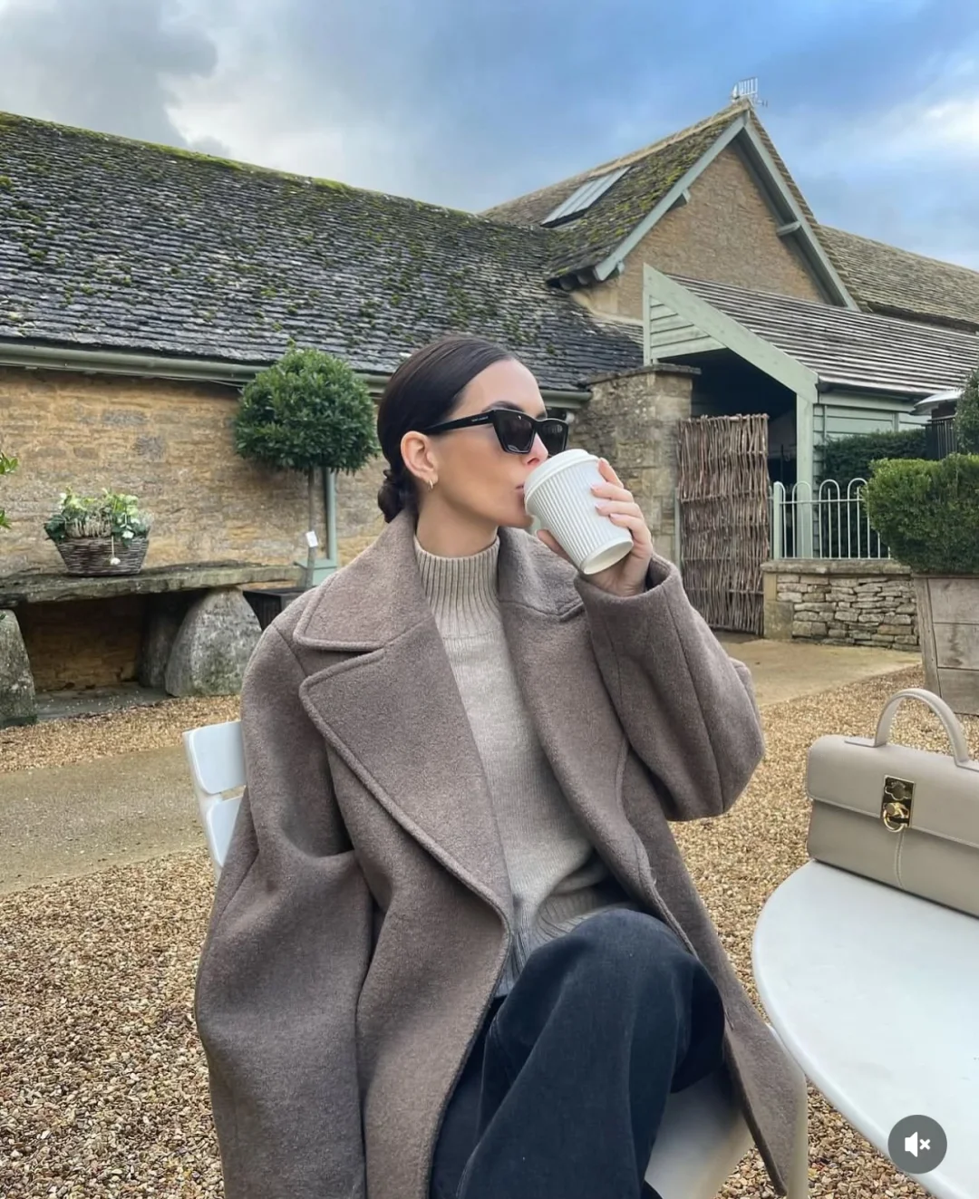 米白不同于刺眼的纯白,它带着温度的暖意,能作为整套look最温柔的基底。