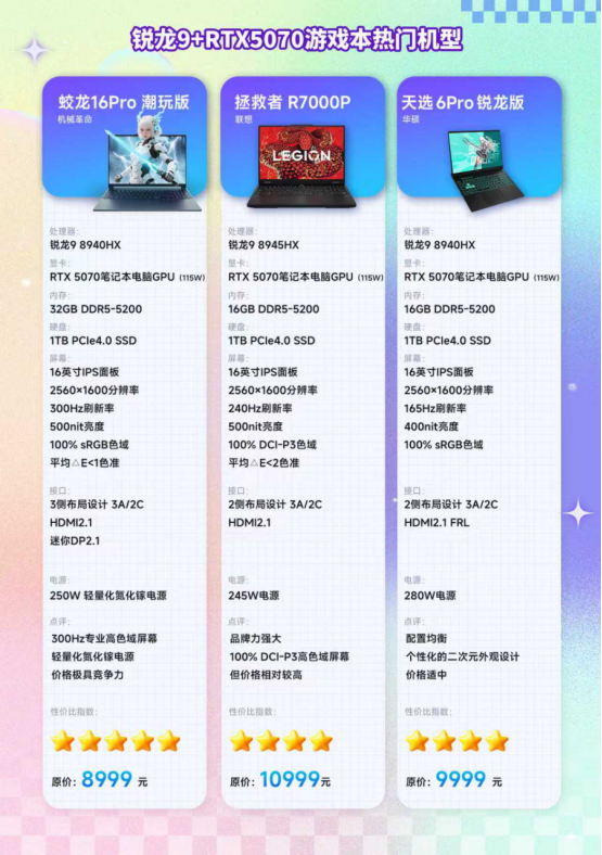 总体来看,这三款RTX 5070游戏本有着各自清晰的方向: