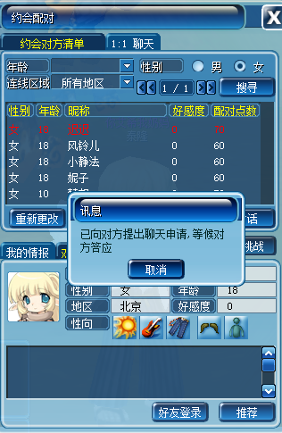 智能搜索:自动扫描角色周围半径内符合条件的玩家,匹配成功头顶显示爱心标识;