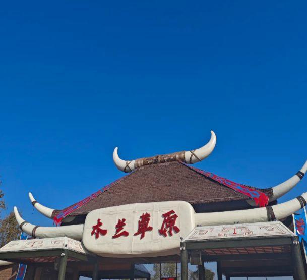 踏入景区,首先映入眼帘的是带有牛角、粗绳与摔跤浮雕的雄伟门楼,渲染出粗犷厚重的草原氛围。放眼望去,开阔的草场、宁静的公主湖、古朴的敖包与散布的蒙古包等景观,共同勾勒出“风吹草低”的视觉画卷。相传这片土地与木兰将军颇有渊源,被认为是其昔日骑马练箭的场所,景区内的骑射雕像也由此成为游人寄托怀想的标志。