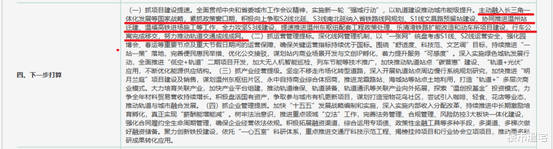 其中,关于在温州轨道交通方面开展的主要工作及取得主要效益、下一步打算,做了如下描述: