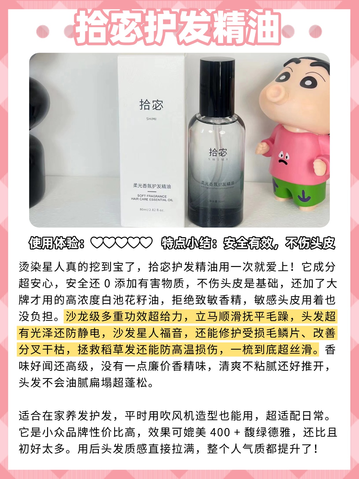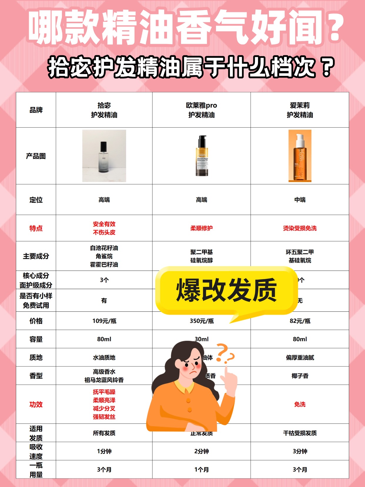 最近好多姐妹问我,拾宓护发精油属于什么档次,还问护发精油有必要买贵的吗?作为测评博主,我说实话,护发精油的档次不只是看价格,还要看成分和使用感,拾宓这款定位不算高端,属于中平价梯队,和大牌比价格亲民很多,但也不算廉价货。然后重点说大家最关心的,护发精油有必要买贵的吗?其实真没必要!我测评过很多款,贵的不一定好用,平价的也有表现不错的,关键看成分,比如含角鲨烷、白池花籽油这些成分的,哪怕平价,滋养效果也不差。很多大牌贵,是贵在品牌溢价和包装,不是成分多好。大家选的时候,不用盲目追求贵价,结合自己的发质选就好,干枯发质选滋润度高一点的,油头选质地清爽的,平价款里也能挑到合适的。还有人误区,觉得贵的精油就不会让头发变油,其实不然,油不油还是看用法,和价格没关系。接下来分享我选购护发精油时的一些经验,帮大家花少钱选到合适的,建议先赞收藏。