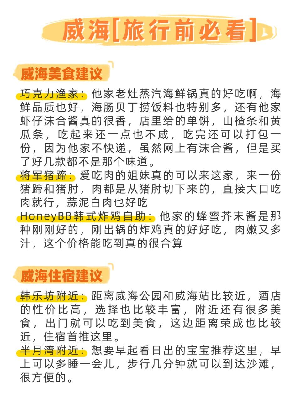 1⃣韩乐坊:绝对可以吃到美食的,一定要傍晚来,这个时候小吃摊啥的就都营业了,在这里解决了好几顿午晚餐2⃣猫头山:最推荐是去三号观景台,这边的风景最好,可以看到猫头山的全貌,山海一色只有亲眼目睹才能感受它的壮阔