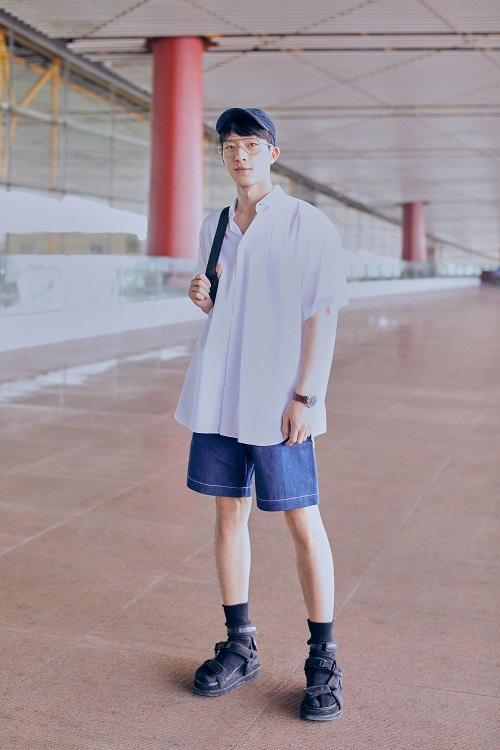 而这组纯白宽松短袖衬衣,配合短裤穿搭,衬托出邻家大哥哥的凉爽感觉,穿上这身宽松打扮的白衬衣,小井先生更是给大家示范了三五好友聚会交游时候的穿衣风范,颇有邻家大哥哥的亲近感。