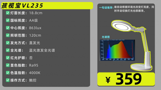 代表型号:孩视宝VL235护眼台灯