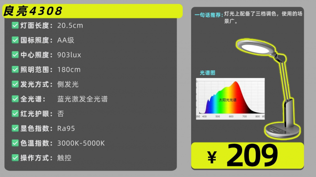 代表型号:良亮4308护眼台灯