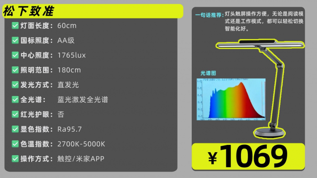 推荐理由:灯头触屏操作方便,无论是阅读模式还是工作模式,都可以轻松切换