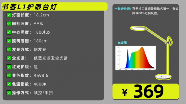 为了做到医学养护眼的高性能和稳定性,书客在产品功能、智能化上持续做减法,死磕“养护眼”,以及久经耐用,不计成本坚持更扎实的灯珠和用料、做工,一款产品死磕三四年。升级26次,优化2100多个光学细节!所以书客即使是不做广告,也凭借着强劲性能技术,得到了许多眼科医护人员的推崇和喜欢,在中高端产品当中的口碑和销量一直处于第一的位置。