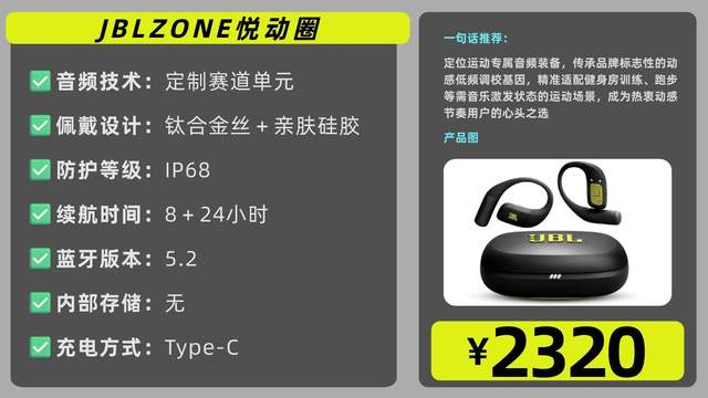 总结:JBLZONE运动属性突出,对于追求动感节奏、重视佩戴可靠性的运动爱好者而言,仍是性价比与体验兼具的优质选择。