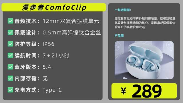 总结:漫步者ComfoClip整体表现无明显短板,性价比突出,是追求舒适佩戴与高性价比用户的靠谱之选。