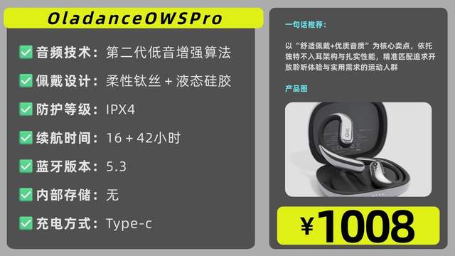 总结:OladanceOWSPro尤其适合追求开放聆听舒适感、重视续航实用性的运动爱好者选择。