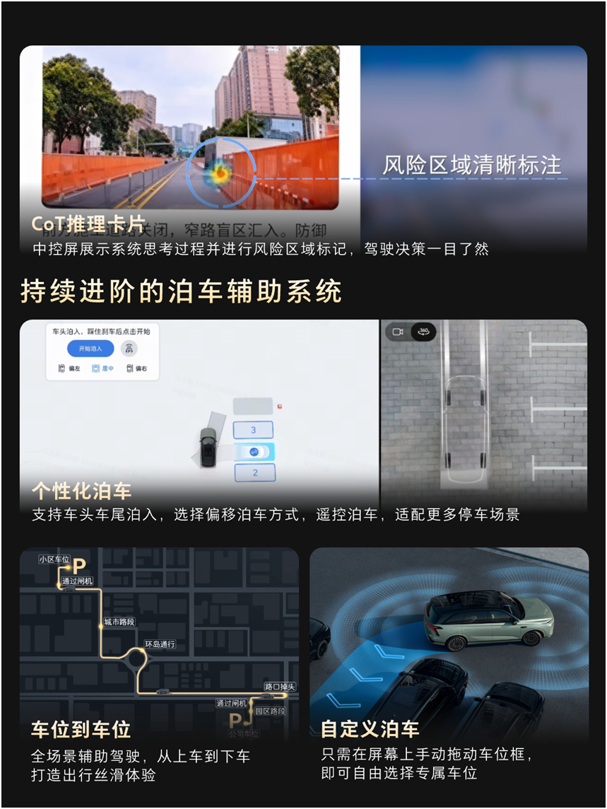 这种能力在真实出行场景中体现得尤为明显。从城市通勤的突发规避,到恶劣天气的稳控防滑,再到非铺装路面的从容通过,“领航员”VLA与“赛车手”Hi4的毫秒级联动,构成了全场景智慧安全的核心。二者一智一勇,一预判一执行,将潜在风险化解于无形,实现了从感知、决策到执行的全局守护。