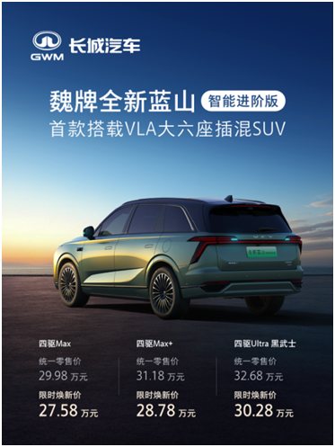 魏牌全新蓝山智能进阶版定位“首款搭载VLA大六座插混SUV”,不仅融合“听得懂、会思考、能交心”的VLA大模型与“省、远、快、稳”兼备的Hi4性能版智能四驱电混技术,实现了VLA+Hi4的高效协同,更在座舱体验与安全防护等维度实现全面进阶,为用户带来了全方位、可感知的升级体验。
