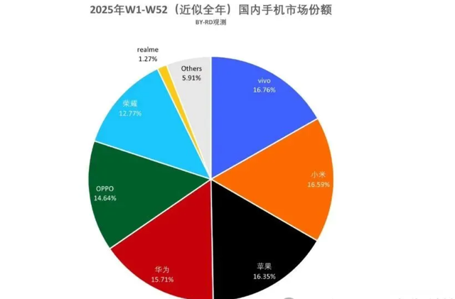 荣耀从第五名,再被挤至第六名,可以说2025年的手机市场,相比于2024年,确实是进行了一轮大洗牌。