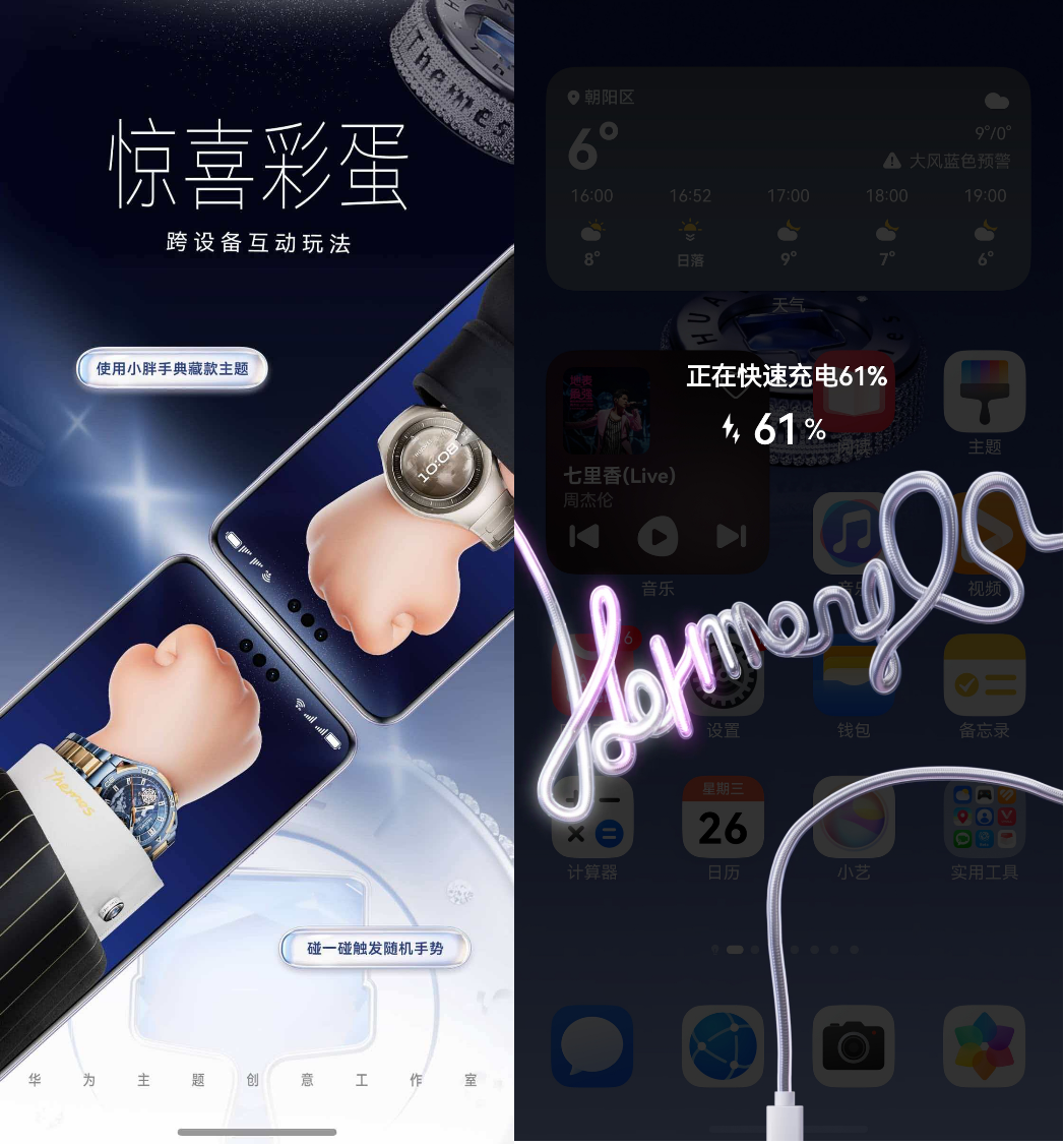 看来华为不仅会技术创新,也会在这种小地方上下功夫,而真正能打动人心的,不就是这些藏在系统深处的,没什么“大用”,却充满人情味的小设计吗?它让手机主题不再是一个简单的视觉设计,而是一个有点可爱,能陪你玩一会儿的好朋友。