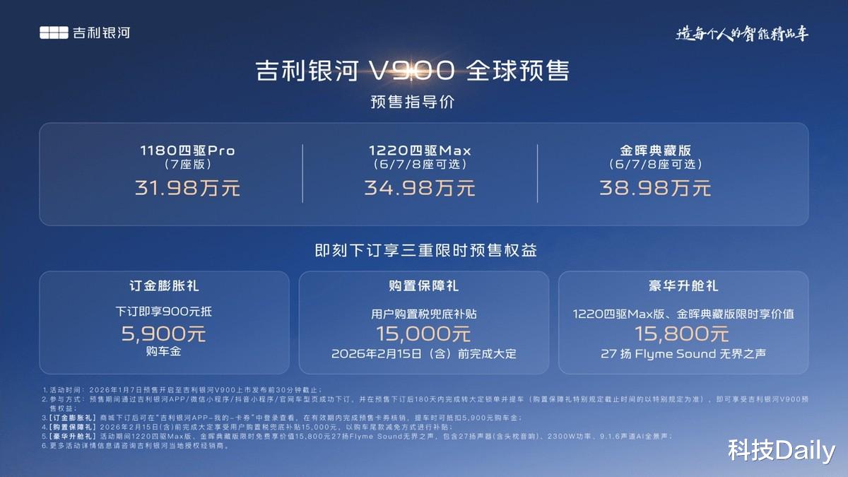 吉利银河V900预售价31.98万元起,AI全场景家庭旗舰MPV来了!全能满配,真香体验,有颜值更好用。