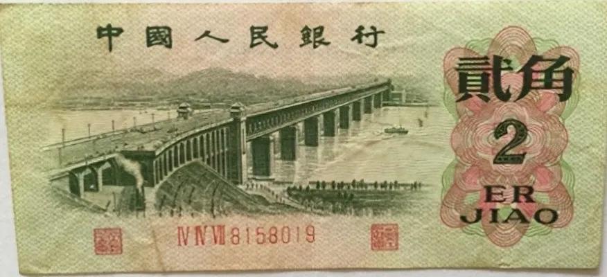 2角纸币正面为武汉长江大桥:第三套人民币2角纸币(1962年发行)的市场价值因版别、品相和交易形式差异较大,单张普通流通品价格约15-30元,全新未流通品可达25-120元,特殊版本或评级币价格更高