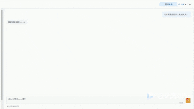 以智能问答为例,用户只需输入一句话,系统即可生成完整的报表填写方案,并附有思考过程、操作指南、数据归属说明及建议分析。比如:“灵活用工是否计入从业人员?”以下是智能体回答的过程演示。