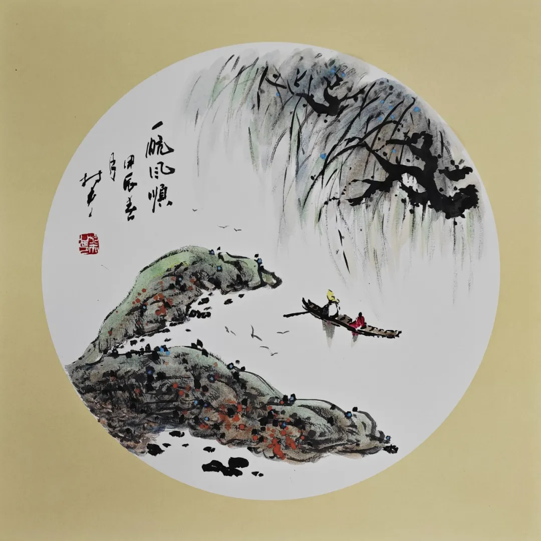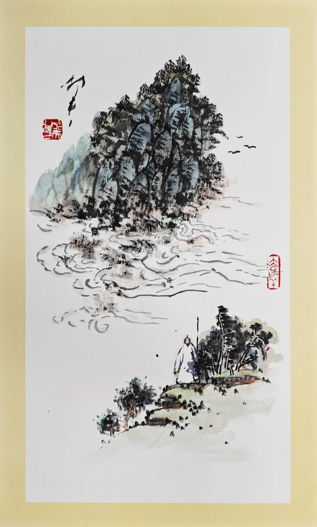 他少时执笔,便与墨结缘。师从陆俨少、尹瘦石、王学仲诸先生,得名师亲炙,窥见笔墨堂奥。于古人处汲取,于自然间叩问,师古而不泥古,守正亦图新。笔下山水,清逸苍润,似有山风拂面;花鸟灵动鲜活,恍闻鸟鸣在枝。浓淡干湿间,是性情的流淌;疏密虚实中,见风骨的挺立。
