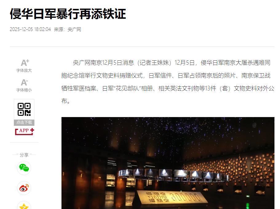 央视证实:15岁高中生网购南京大屠杀罪证并捐赠。