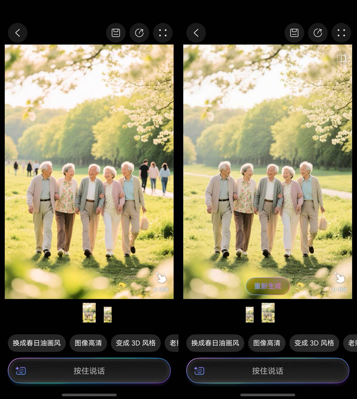 上周末我们社区还组织了春游活动,结果又成了王阿姨显示身手的时候,因为拍照时背景里总有人乱入,结果她对着小艺下:“消除路人”,几秒钟照片背景就变得干干净净。她说现在学摄影、修照片这些事,在小艺这里动动嘴就能搞定了,不用求人也不用学软件。