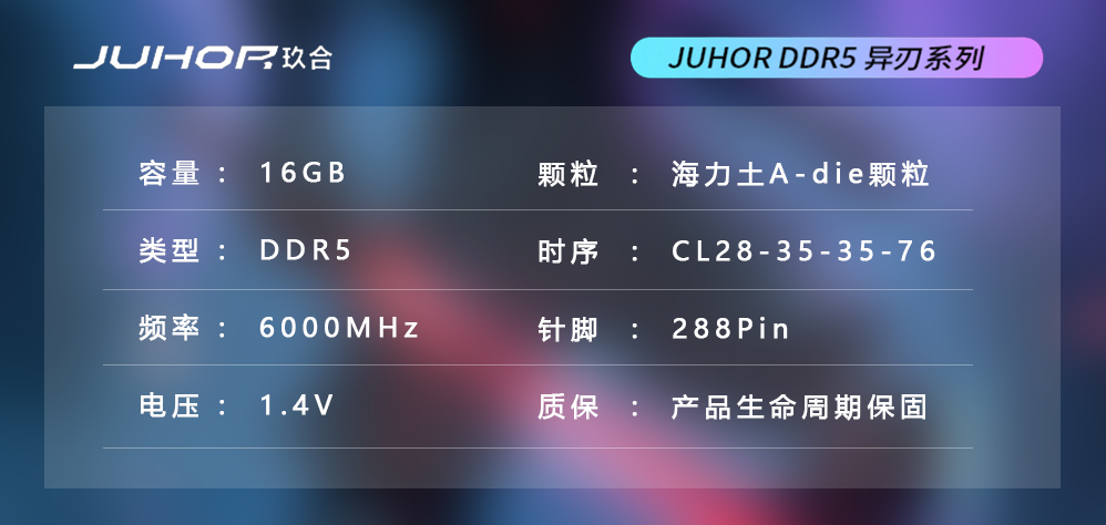 随着DDR5内存成为装机主流,AMD AM5平台用户对内存的核心诉求愈发清晰:既要匹配平台甜点频率以发挥最佳性能,更要凭借低时序降低延迟,实现游戏与生产力体验的双重提升。对于AM5平台而言,内存时序的重要性甚至不亚于频率,CL28级别的超低时序,能大幅优化内存响应速度,让锐龙处理器的性能潜力充分释放——这一优势在竞技游戏的高帧稳定性、生产力软件的多任务处理中尤为突出。深耕存储领域近十年的国产品牌玖合,推出的异刃系列DDR5内存便精准契合这一需求,其中6000 C28 16GB*2黑色款,搭载海力士A-Die颗粒,以6000MHz黄金频率搭配CL28超低时序,成为AM5平台的理想搭档。